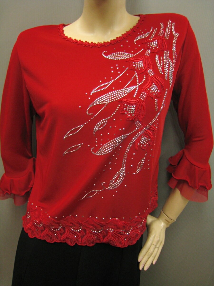 送料無料2~4日後到着 演奏会 ブラウス コーラス衣装 ブラウス 大正琴 フォーマル ブラウス大きいサイズ 舞台衣装 発表会衣装 刺繍トップスLサイズ 濃い赤