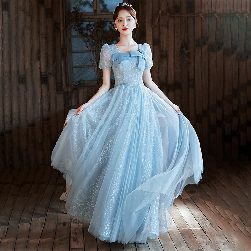 ・カテゴリ: ウェディングドレス・主な素材: ポリエステル・カラー: ブルーグレー・サイズ展開: XS, S, M, L, XL, XXL, XXXL・スカートシルエット: Aライン・ネックライン: オフショルダー・袖丈: 3分袖・スカート丈: ロング・ウエスト: ハイウエスト・性別: レディース