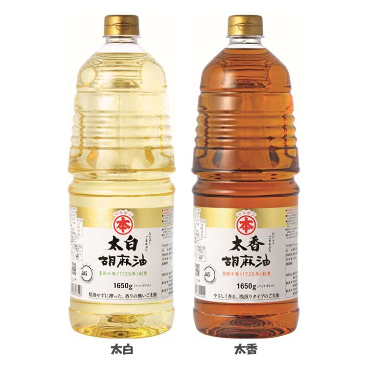 【太白胡麻油】香りのない普段使いのごま油胡麻を生のまま搾った普段使いの無香性オイルです。お菓子・パン作りにもおすすめ。【太香胡麻油】やさしく香る、すっきりとしたごま油穏やかな香りとまろやかな味が特徴。和食・日本料理にもおすすめ。●内容量1650g●原材料食用ごま油(国内製造)●成分オレイン酸、リノール酸、リグナン類(検索用:胡麻油 ごま油 ゴマ油 太白ゴマ油 太香ゴマ油 太白ごま油 太香ごま油 太白胡麻油 国内製造 高級胡麻油 リグナン類 セサミン FSSC22000 享保10年創業 マルホン 4904688524024 4904688533026) 最強翌日配送対象商品に関するご案内 最強翌日配送対象商品・対象地域に該当する場合は最強翌日配送マークがご注文カゴ近くに表示されます。 最強翌日配送可能なお支払方法は【クレジットカード、代金引換、全額ポイント支払い】のみとなります。 下記の場合は最強翌日配送対象外となります。 ・15点以上ご購入いただいた場合..