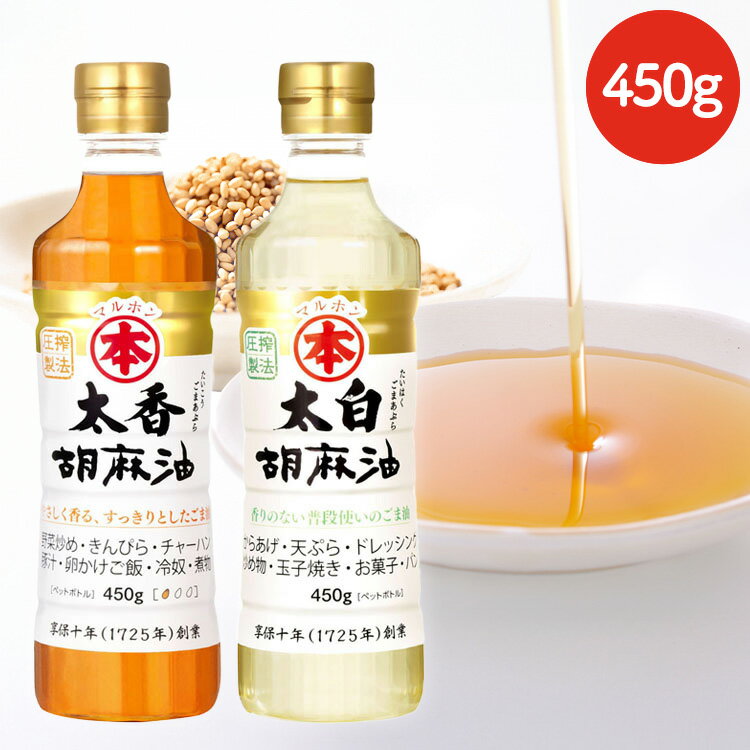 ごま油 調味料 450g 胡麻油 ゴマ油 太白ゴマ油 太香ゴマ油 太白ごま油 太香ごま油 太白胡麻油 国内製造 高級胡麻油 リグナン類 セサミン FSSC22000 享保10年創業 マルホ..