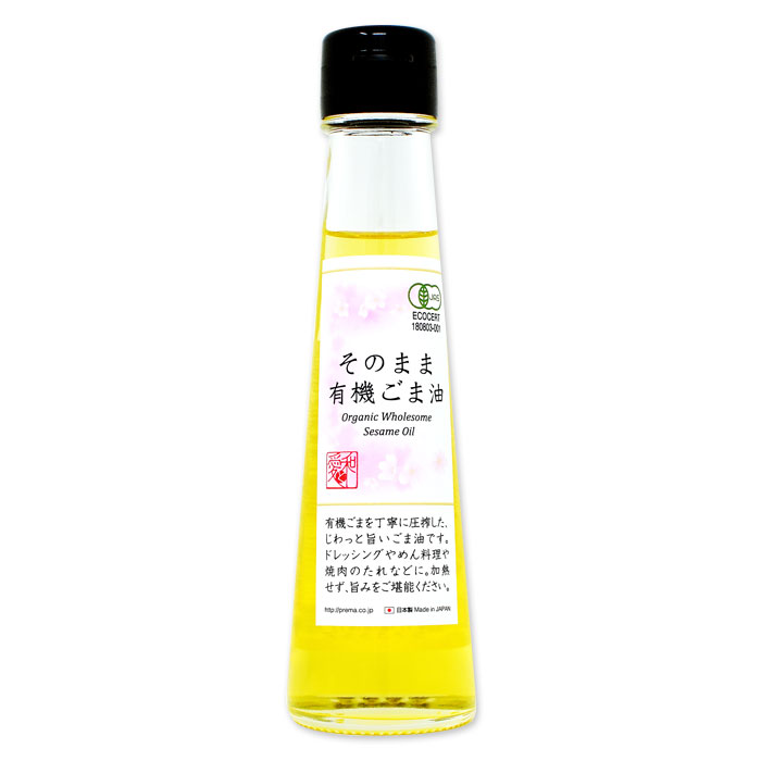 さらっとフレッシュ、有機白ごま油有機ごまを丁寧に圧搾した、じわっと旨いごま油です。ドレッシングやめん料理や焼肉のたれなどに。加熱せず、旨みを堪能ください。 ■原材料:有機食用ごま油(国内製造) ■製造日からの開封前賞味期間:365 日 ■保存方法:直射日光、高温多湿を避け常温で保存 【ご注意】 ※製品の特質上、沈殿やにごりが生じる事がありますが、 ※品質には問題ありません。同一工場内でアーモンドの取扱いがあります。 >>プレマシャンティ|油・調味料・だしの商品一覧ほんものの生産者と消費者が繋がる世界、「プレマシャンティ」。 四季移りゆく美しき日本だから生まれた、世界に誇る商品たち。プレマシャンティのトップページへ