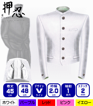 【短ラン】一刀両断(着丈45cm/Vラインシルエット/カラー学生服/RIVAX)[L・LLサイズ][白・紫・赤・桃・黄] ★ 送料無料 ★