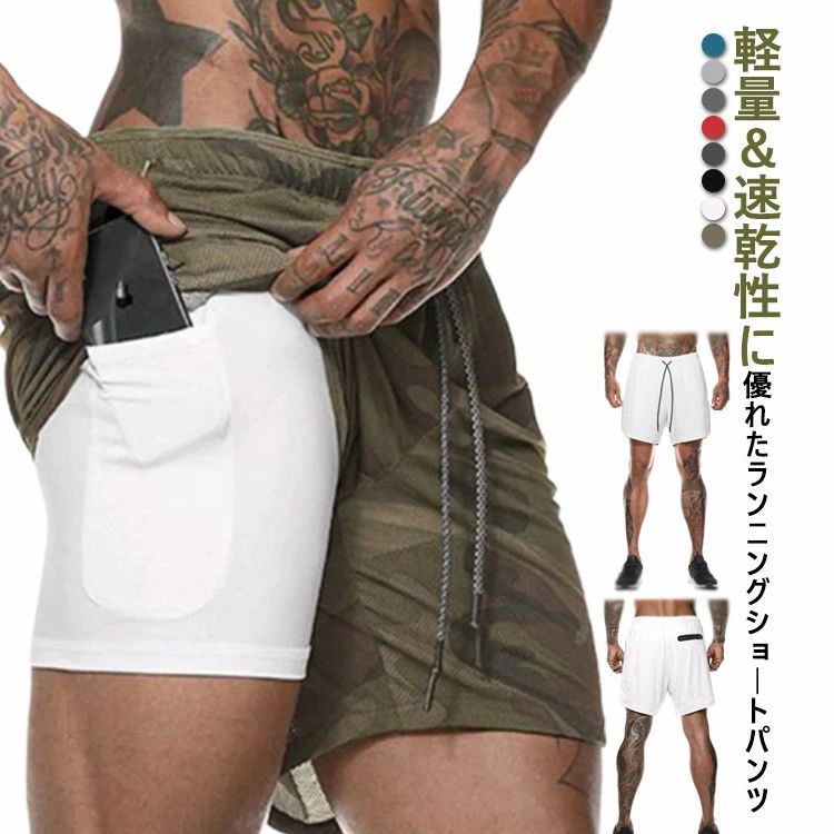 短 ランニング ジャージ ジムウェア 吸汗速乾 通気 短め ショートパンツ メンズ インナー付き トレーニングウェア ハーフパンツ