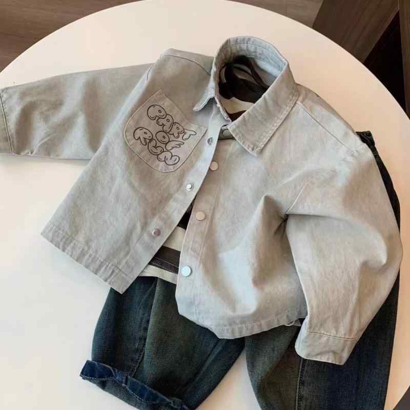 キッズ 服 カトゥーン デニム ジャケット 韓国風 男の子 セットアップ 秋物 子供服 3点セット 長袖 長ズボン 綿80% 幼児 普段着 かわいい