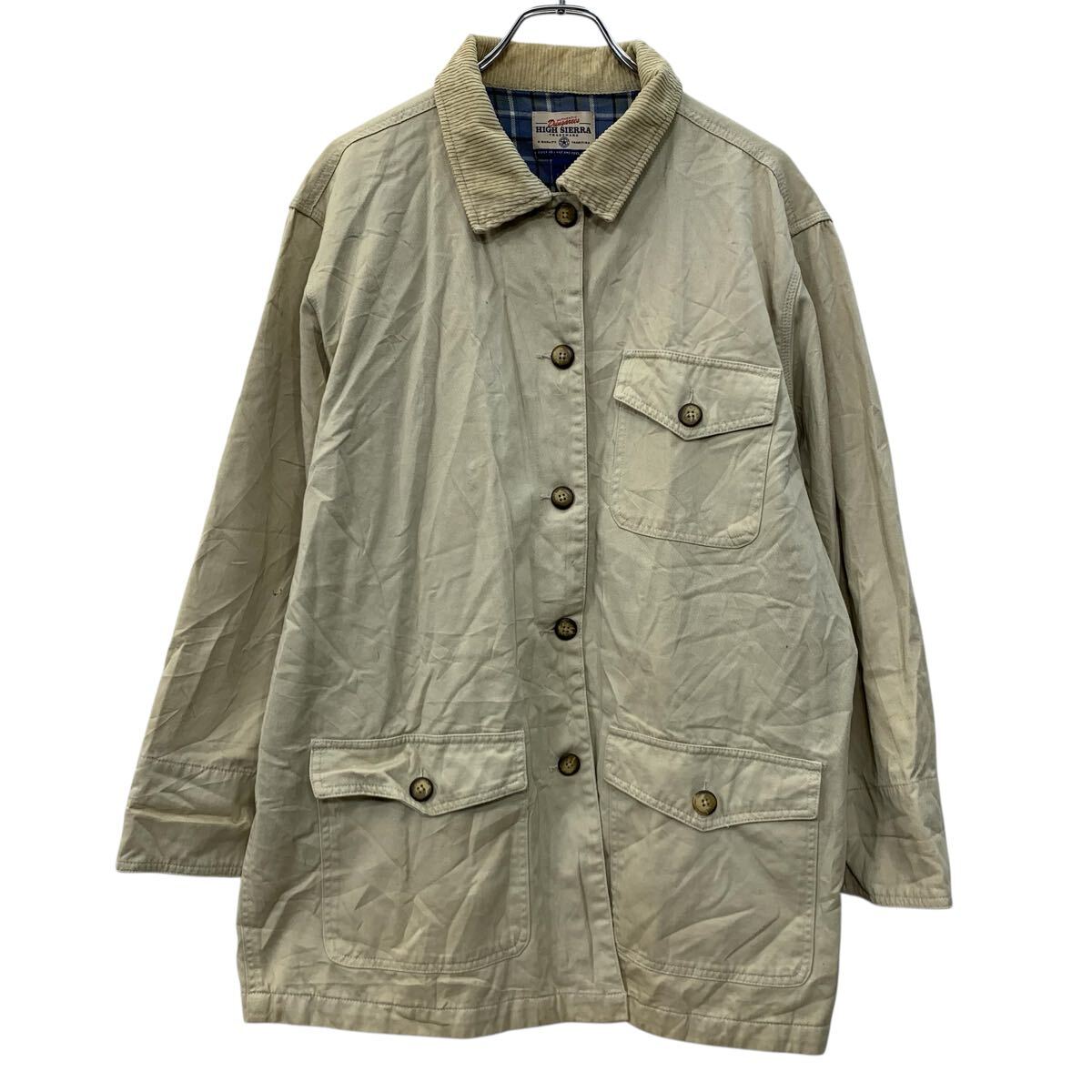 【中古】【古着】 HIGH SIERRA ジャケット L ベージュ ハイシェラ ボタン 胸ポケット 襟コーデュロイ コットン100% 無地ジャケット 秋物 a710-7084