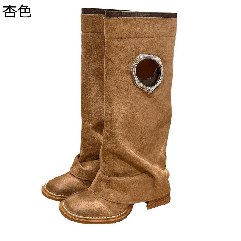 ロングブーツ レディース 秋冬 ワイドシャフト ゆったり 安定感 大きい 透かし彫り 太めヒール 6cmアップ ジョッキーブーツ 膝丈 防滑 歩きやすい 細見え 幅広 フェミニ..