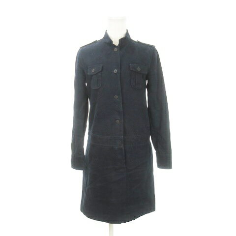 【中古】アーペーセー A.P.C. シャツワンピース ひざ丈 長袖 スタンドカラー コーデュロイ ウール混 36 S 紺 ネイビー /AH14 レディース 【ベクトル 古着】 250819