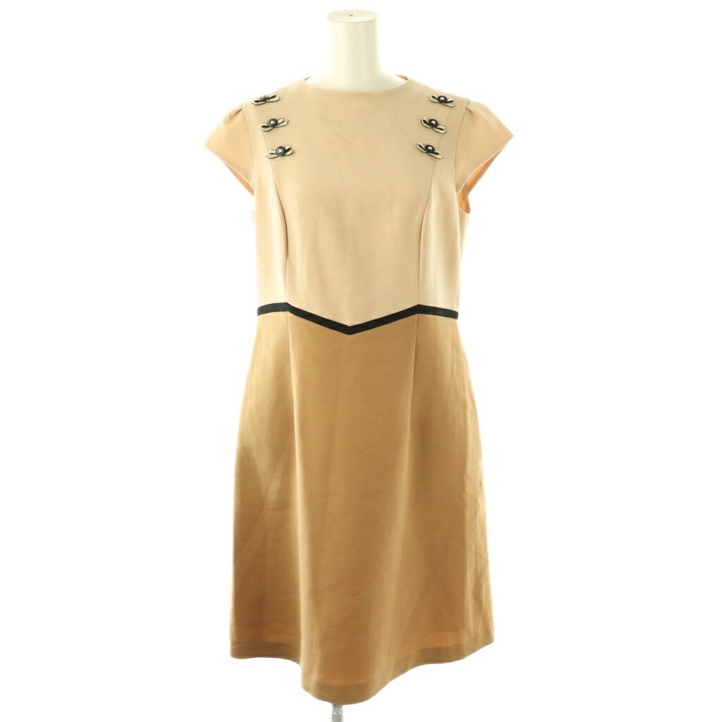 【中古】トッカ TOCCA リボン フレンチスリーブ ワンピース ひざ丈 半袖 6 ベージュ /AT ■OS レディース 【ベクトル 古着】 250903