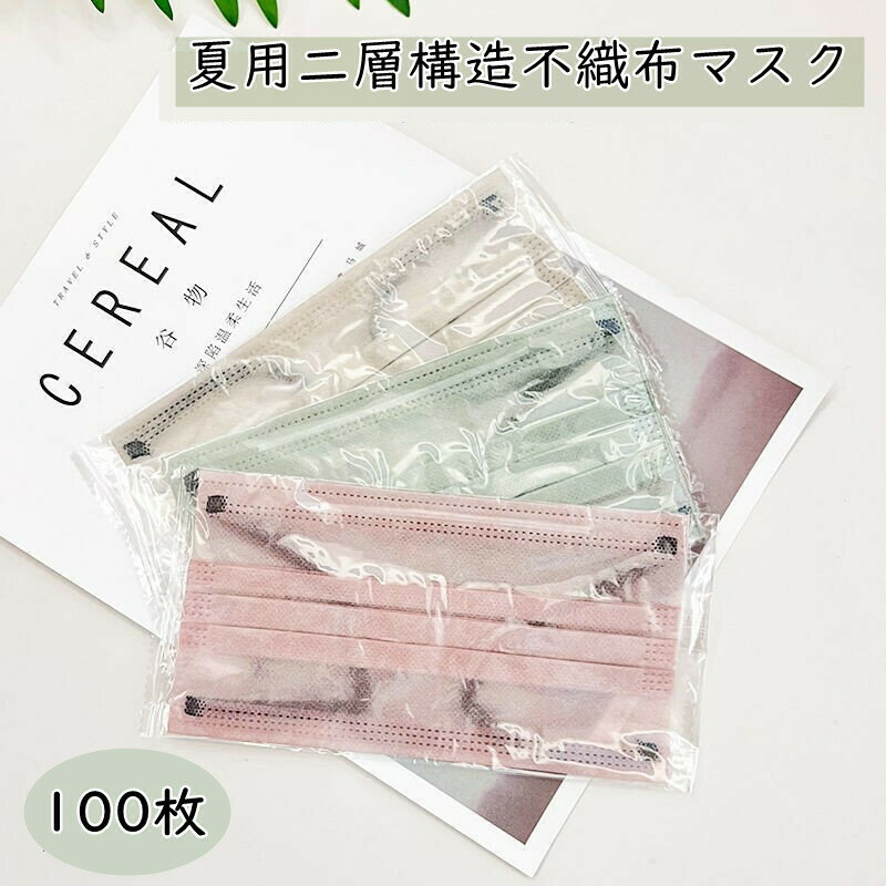 2層マスク 通気夏用マスク マスク 不織布マスク カラー 2層式 通気 100枚 個包装 不織布マスク 使い捨てマスク mask ますく 3D立体構造 飛沫防止 花粉対応 抗菌通気快適 大人用 男女兼用 ピンク グリーン【選べる3色2PLY】マスク不織布 100枚入り カラーマスク 大人用使い捨てマスク マスク 母の日 プレゼント 実用的1商品情報商品名2層式不織布使い捨てマスクセット/カラー100枚セット/選べる3色ポイント【夏や暑い作業環境に適した2層マスク】2層構造により、軽く通気性も抜群。室内での長時間の使用や掃除のホコリ対策、暑い季節、場所での使用に最適です。立体プリーツ加工を施しており、顔にフィットして、息苦しさを軽減いたします。形状記憶ワイヤーを使用したノーズフィットで鼻から頬のラインにピッタリとフィットして、上部の隙間を小さくします。口とマスクの間に空間があるため、口紅も付きにくく女性にも適したマスクです。【プリーツタイプ】..