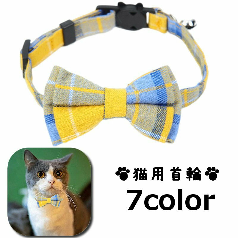 猫用首輪 カラー ペット用品 アクセサリー チョーカー 首飾り 鈴 リボン 蝶ネクタイ チェック柄 可愛い セーフティバックル 安全バックル