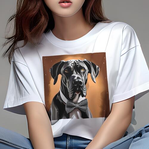 グレートデーン Tシャツ レディース 犬ファン 半袖 春夏 犬柄 プリント カジュアル かわいい 人間用 個性派 ここだけのデザイン 面白 蝶ネクタイ グレートデーン