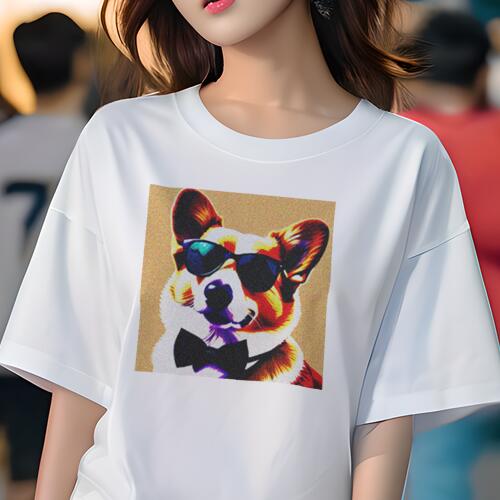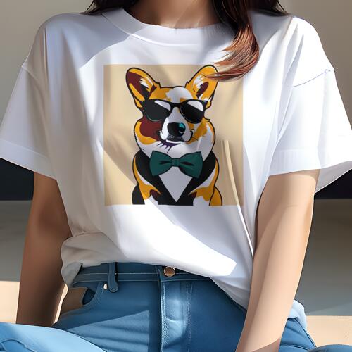 コーギー Tシャツ 犬愛 ユニークデザインレディース 犬ファン 半袖 春夏 プリント カジュアル かわいい 人間用 ギフト 個性的 サングラス コーギー 蝶ネクタイ