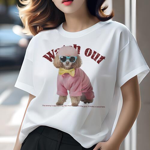 Tシャツ メンズ キッズ 犬ファン 半袖 春夏 犬柄 プリント カジュアル かわいい 人間用 フィットネス ダンス めがね プードル ピンクの背景 蝶ネクタイ