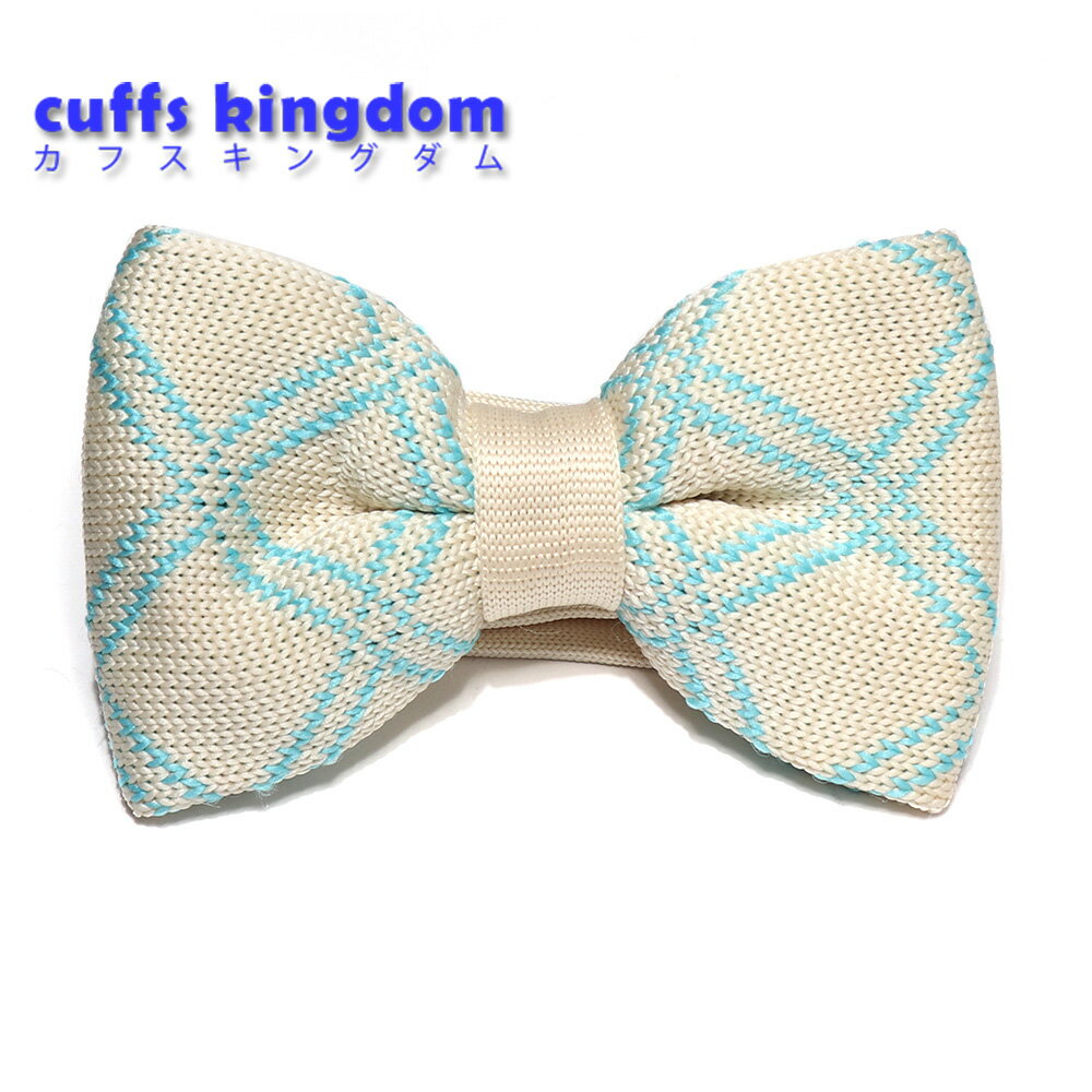 蝶ネクタイ ニットタイプ アイボリー/水色 大きなチェック柄 リボンタイ 発表会 コンサート 結婚式 入学式 ドレスアップ 英国 マナー プレゼント ギフト