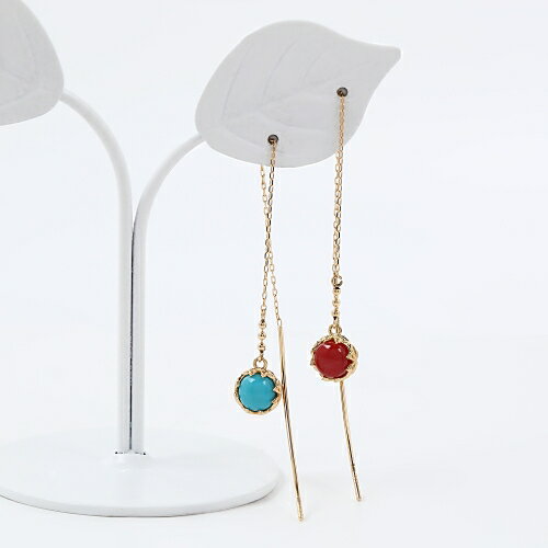 K18 血赤サンゴ トルコ石 リバーシブル アメリカンピアス 18金ゴールド【送料無料】【あす楽対応】【ラッピング無料】