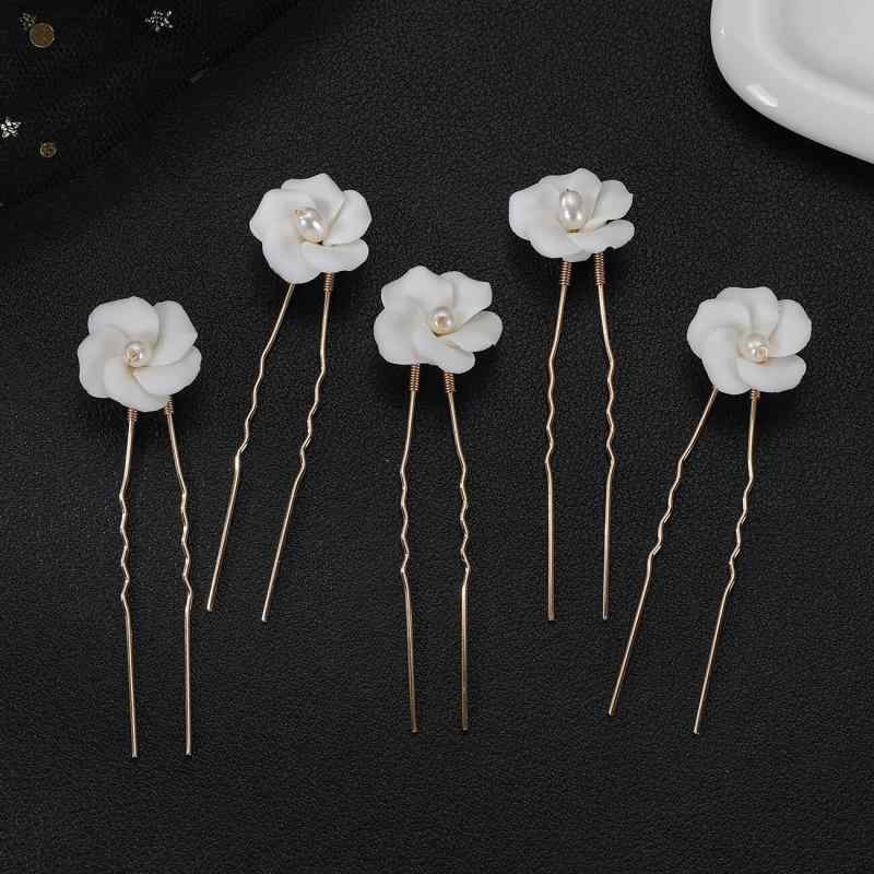 髪飾り レディース 女性用 陶器製 セラミック 花 フラワー 簪 かんざし ヘアスティック 手作り ハンドメイド 田園風 カントリースタイル 結婚式 ブライダル 新婦 花嫁 ホ..