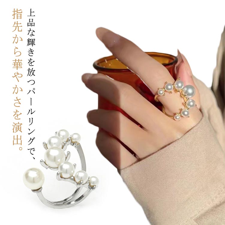 パールリング レディース リング 指輪 華やか サイズ調節可能 パーティー 結婚式 成人式 記念日 パールアイテム プラスチックパール 可