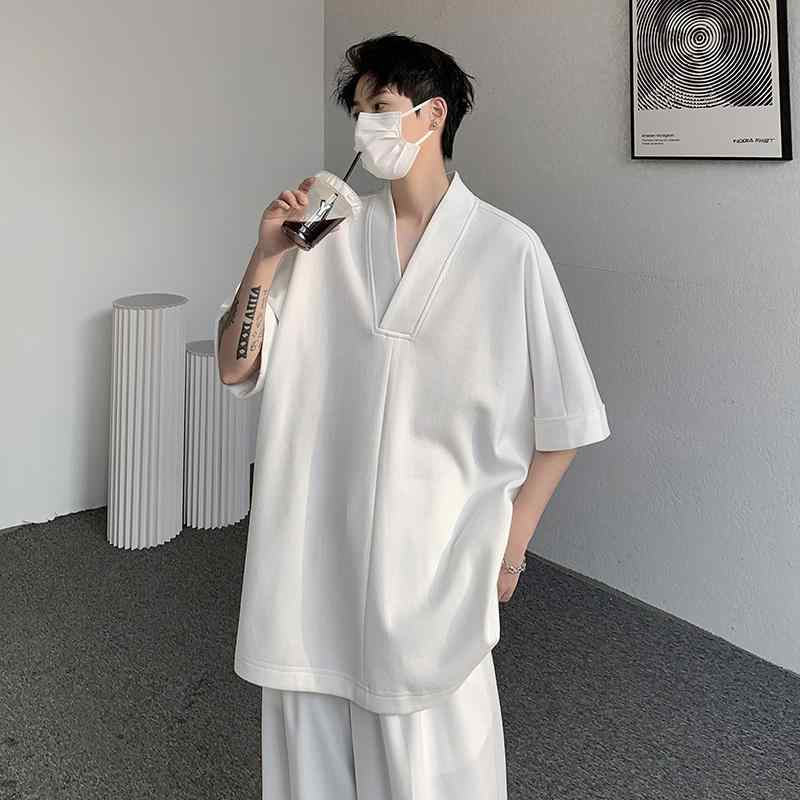 tシャツ メンズ 韓国 トップス カットソー 半袖 夏 Vネック 薄手 ゆったり ビッグシルエット 大きいサイズ 無地 シンプル カジュアル 白