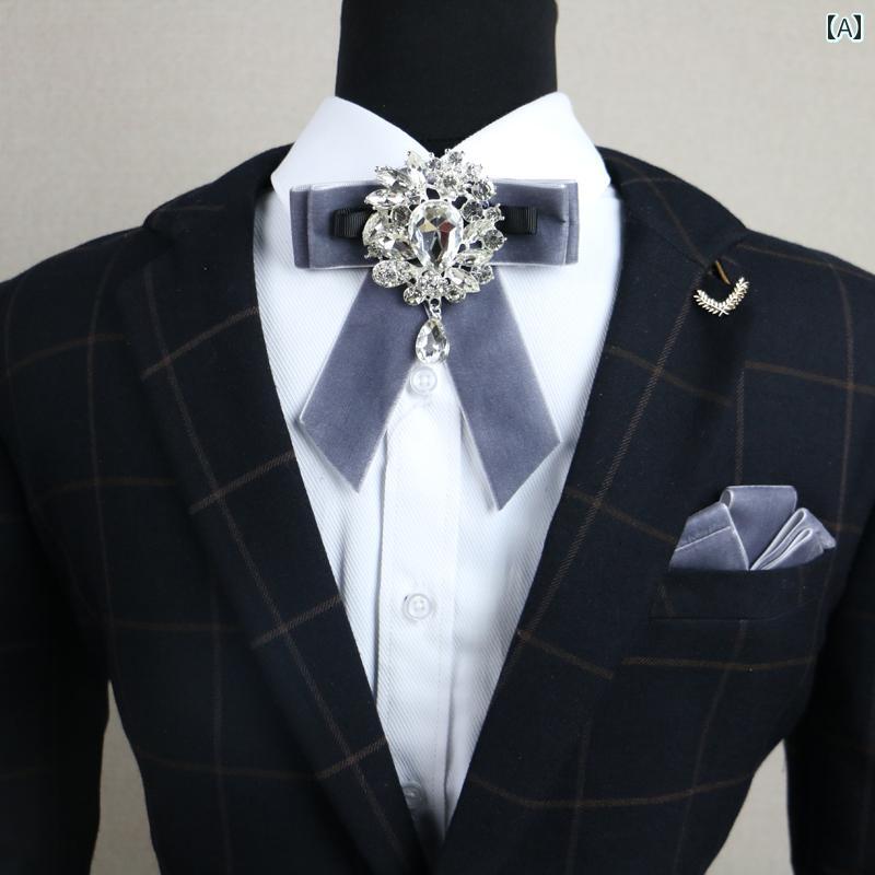 リボンタイ メンズ おしゃれ 韓国 蝶ネクタイ キラキラ 男性用 結婚式 新郎 ブライダル パーティー イベント フォーマル ジルコニア ビジュー 揺れる 豪華 無地 ポリエス..