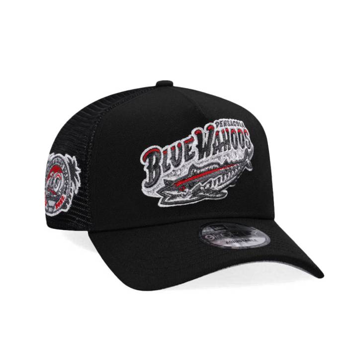 ニューエラ New Era 【 Pensacola Blue Wahoos 10 Years Black Trucker Edition 9Forty A Frame Snapback Trucker Edition 9Forty A Frame Snapback Hat Men Black 】 青..