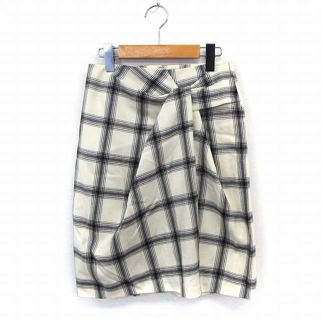 【中古】ボールジー BALLSEY トゥモローランド スカート タイト 膝丈 チェック ドレープ バックジップ 34 アイボリー /ST22 レディース 【ベクトル 古着】 201130 ブラン..