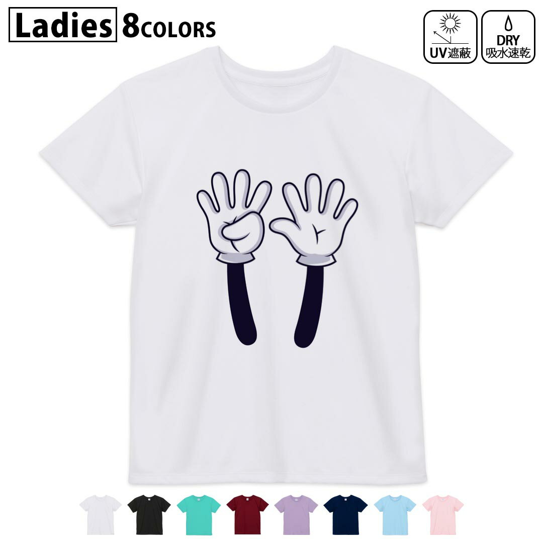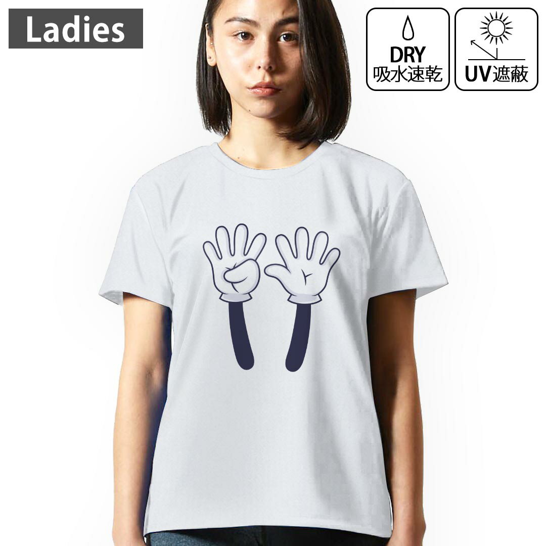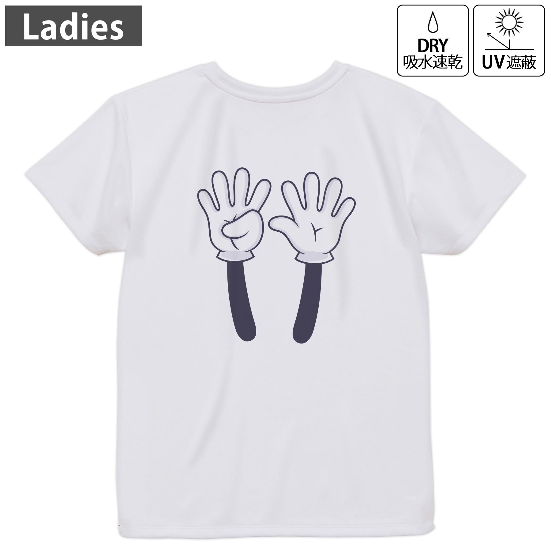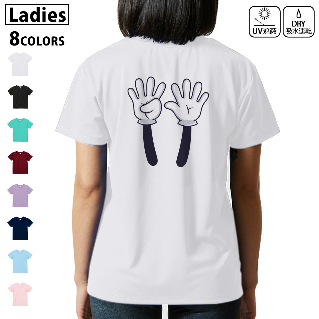 ドライ Tシャツ バックプリント 選べる8カラー tシャツ レディース 半袖 速乾 紫外線遮蔽 UV デザイン 2サイズ Tシャツ ティーシャツ T shirt 032551 9 nine ハンドサイ..