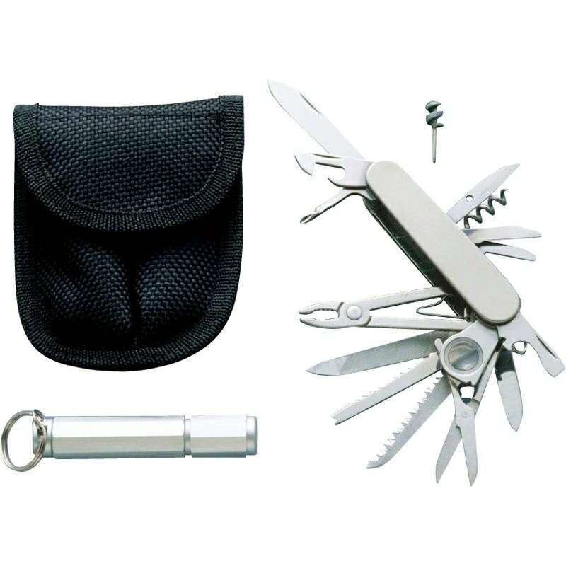 ■商品紹介商品番号:ns-sq-f4061-r0717種類の機能を持つ万能ツールと、小さくても明るいフラッシュライトのセットです。-機能- ナイフ、ノコギリ、ハサミ、うろこ取り、栓抜き、缶切り、プラスドライバー、マイナスドライバー、キリ、ヤスリ、針外し、コルク栓抜き、ペンチ、ナイフ、定規、ミニドライバー、レンズ■サイズ・容量・規格【パッケージサイズ】110×38×95mm【内容】多機能ツール:95×20×25mm、フラッシュライト:80×10×10mm、ポーチ【材質】ステンレススチール、ABS樹脂、アルミ合金【電池】別売(単4電池1個)【生産国】中国【パッケージ形態】化粧箱入■注意事項■こちらの商品はメーカー直送品となります。■メーカーに在庫が無い場合はキャンセルさせていただくことがございます。■お客様ご都合による返品・交換は出来ませんのでご注意ください■北海道、沖縄、離島については別途送料が掛かります。