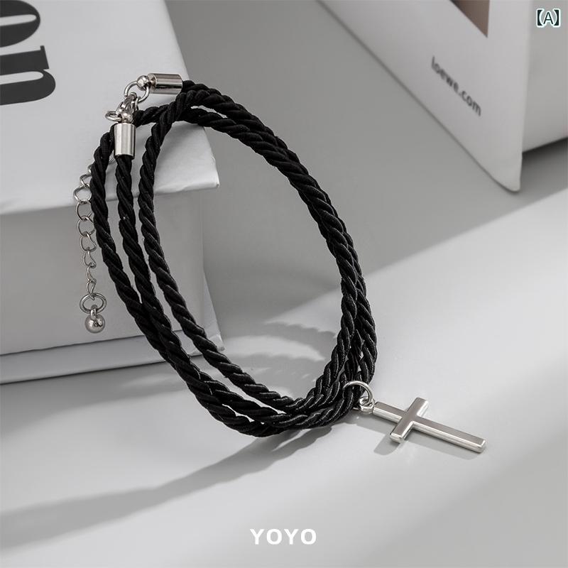 ネックレス 十字架 クロス YOYO アドベンチャー 多層 編み クロス ブレスレット メンズな 欧米 ファッション 個性的な ブラック エスニック
