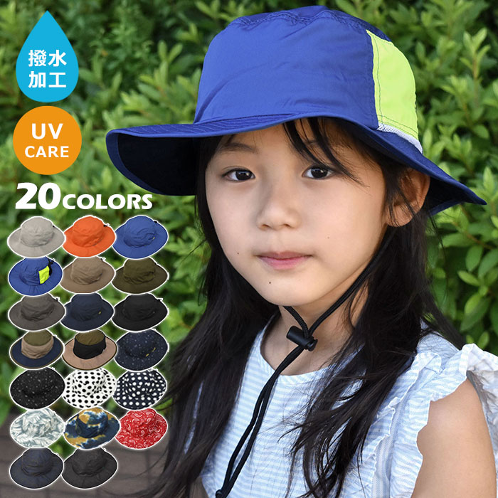 無地 総柄 撥水加工 アドベンチャーハット 54cm 58cm /レディース メンズ キッズ 男女兼用 女の子 男の子 子供 子ども 親子 お揃い 帽子 ハット 撥水 プール UV UVカット..