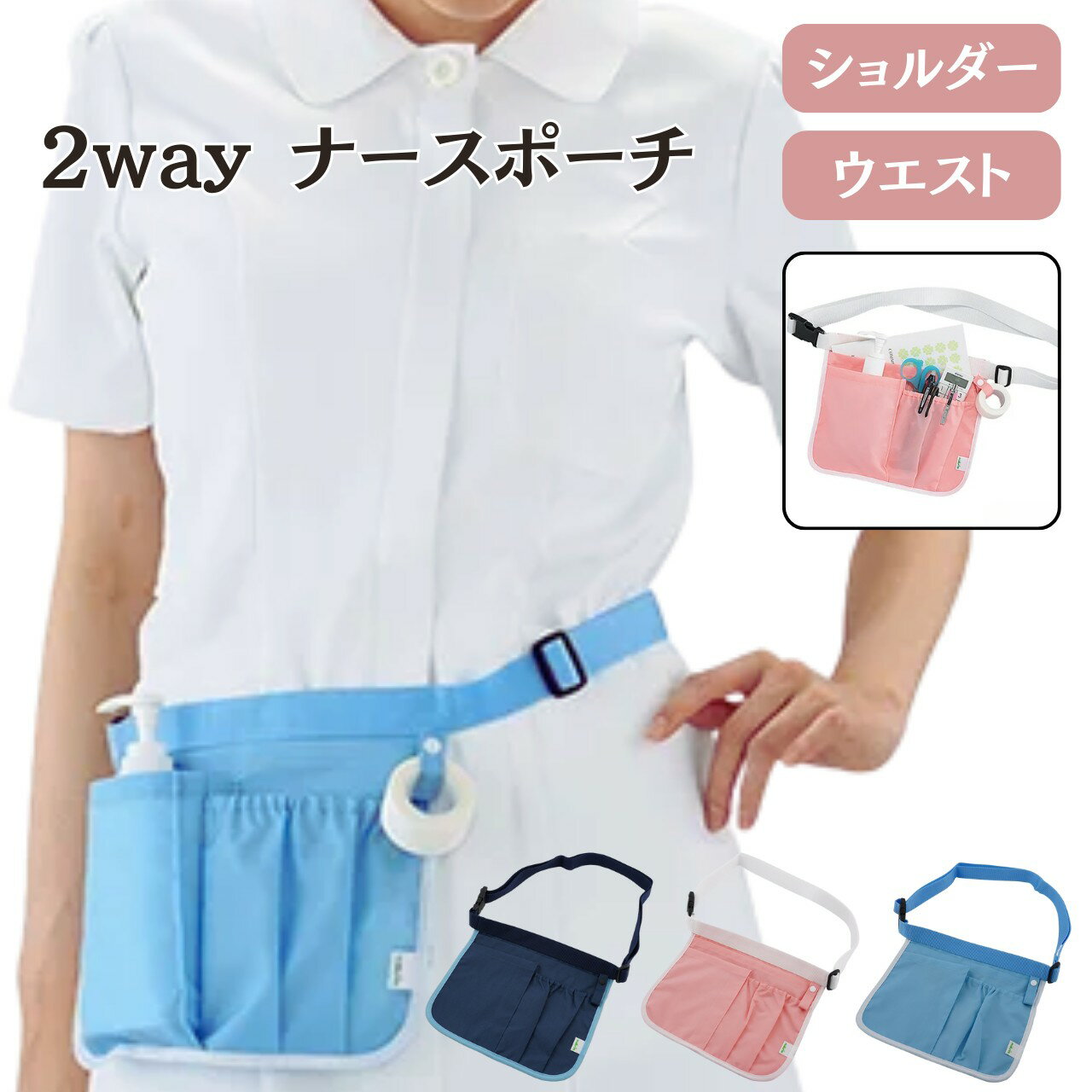 ナースポーチ 2wayナースポーチ ネイビー ピンク ライトブルー WNP-2 訪問看護バッグ 訪問介護バッグ ナース 介護バッグ 施設 ショルダー ウエストポーチ