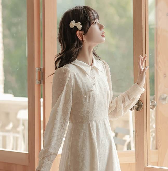 ワンピース ドールスカート シャツ リボン 長袖 袖あり 春 秋 夏 かわいい 大人可愛い きれいめ シンプル カジュアル 大人 上品 おしゃれ かっこいい レトロ アジアン 大..