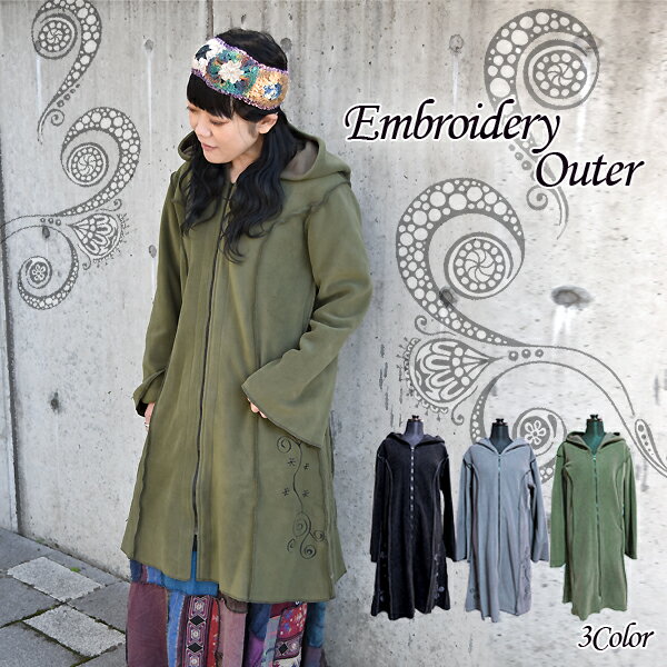 刺繍アウター アウター 羽織り エスニックアウター エスニック アジアンアウター アジアン バリブラン 無地アウター 無地 レディース 冬 秋 山ガール オシャレ フリース