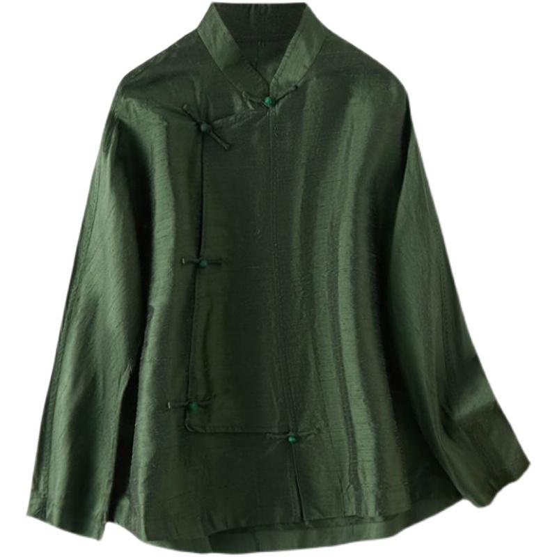 チャイナ風 トップス かわいい アジアン エスニック レトロ ボタン レディース 春秋 シャツ スタンドカラー 長袖 大きいサイズ シンプル 普段使い 緑