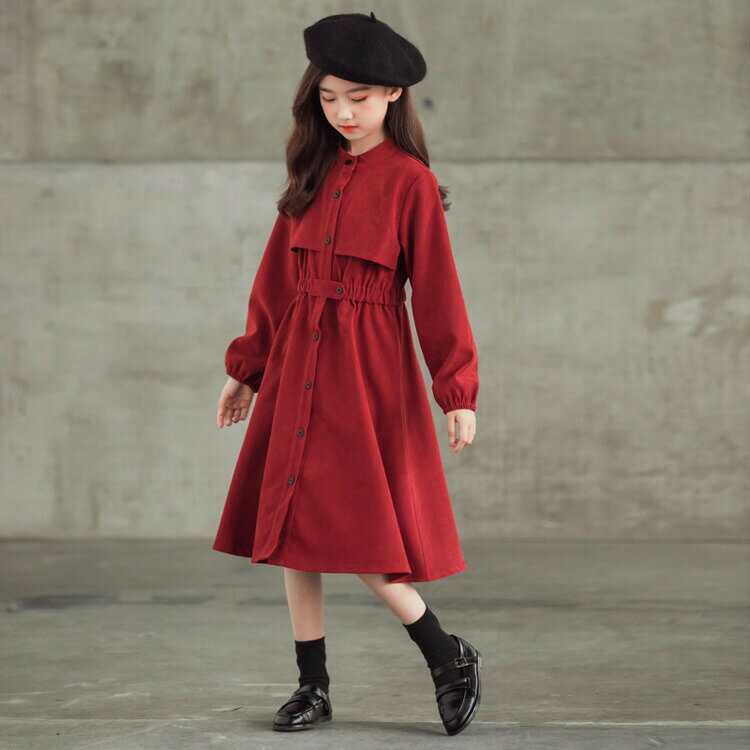 子供ドレス ワンピース 女の子 ドレス ジュニア ガーリー 入学式 子供 ドレス 長袖 女の子 キッズ 卒業式 入学式 フォーマル 子供服 トレンチ風ワンピース フロントボタ..