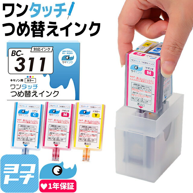 【サイインク】純正の約2.2倍以上の大容量 キヤノン(Canon)用 ワンタッチ詰め替えインク 3色カラー補充用インク シアン 2本 マゼンタ 2本 イエロー 2本 汎用版 FINEカートリッジ BC-310/BC-311 B[商品内容] キヤノン用 FINEカートリッジ BC-310/BC-311 BC-340/BC-341 BC-340XL/BC-341XL BC-345/BC-346 BC-345XL/BC-346XL BC-360/BC-361 BC-360XL/BC-361XL BC-365/BC-366 BC-365XL/BC-366XL シリーズ対応 ワンタッチ詰め替えインク 補充用インク シアン×2本 マゼンタ×2本 イエロー×2本 すべて染料インクを使用 品質維持のため補充用インクはひとつずつ個包装[対応機種] PIXUS MP493 / PIXUS MP490 / PIXUS MP480 / PIXUS MP280 / PIXUS MP270 / PIXUS MX420 / PIXUS MX350 / PIXUS iP2700 / PIXUS TS5130S / PIXUS TS5130 / PIXUS MG4230 / PIXUS MG4130 / PIXUS MG3630 / PIXUS MG3530 / PIXUS MG3230 / PIXUS MG3130 / PIXUS MG2130 / PIXUS MX523 / PIXUS M..