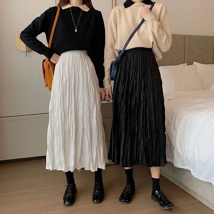 【P2倍&クーポン有】プリーツスカート 春 夏 秋 スカート レディース ロング丈 ミディアム丈 フレア プリーツ ウエストゴム ブラック ホワイト ベージュ フリーサイ..