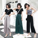 【P2倍&クーポン有】リラックスパンツ ワイド ボトムス レディース 春 夏 秋 ロング丈 ストレート プリーツ リボン ウエスト ウエストゴム ブラック ベージュ グリー..
