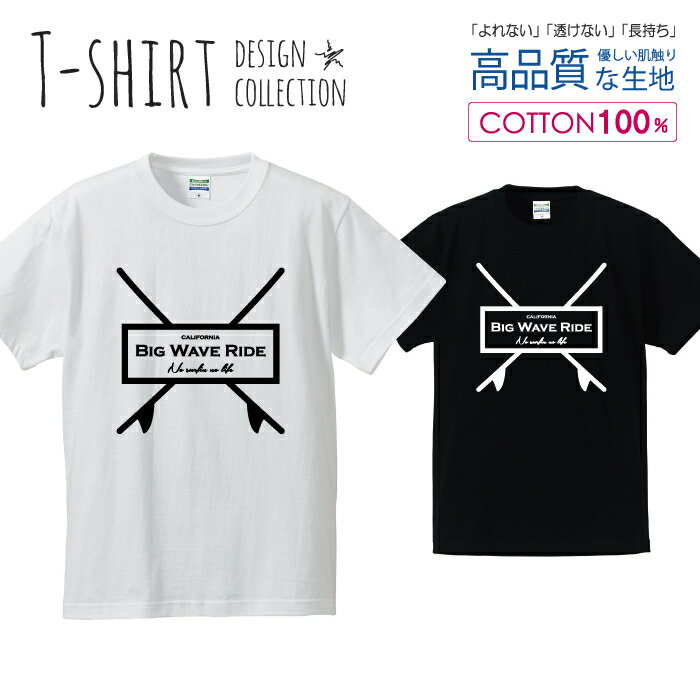 BIG WAVE RIDE サーファー サーフィン デザイン 白黒 Tシャツ メンズ サイズ S M L LL XL 半袖 綿 100% よれない 透けない 長持ち プリントtシャツ コットン 人気 ゆった..