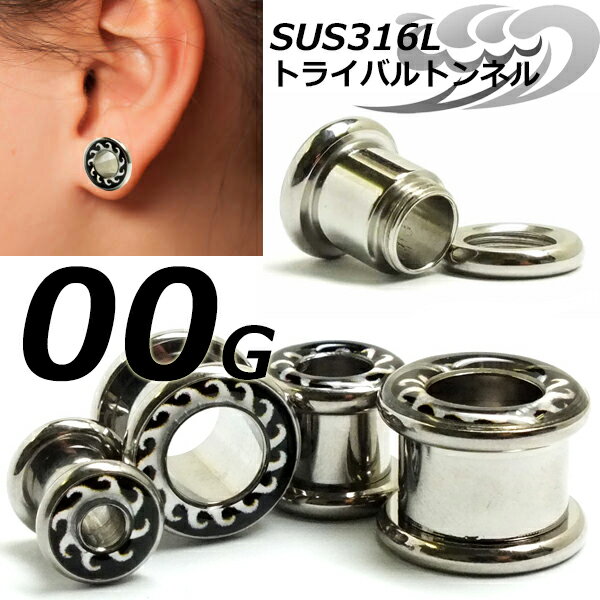 [ 00G 波 ボディピアス ] トライバルトンネル 00G 00ga ボディーピアス 土管型 ウエーブ サージカルステンレス316L 金属アレルギー メンズ レディース ネジタイプ ペア ..