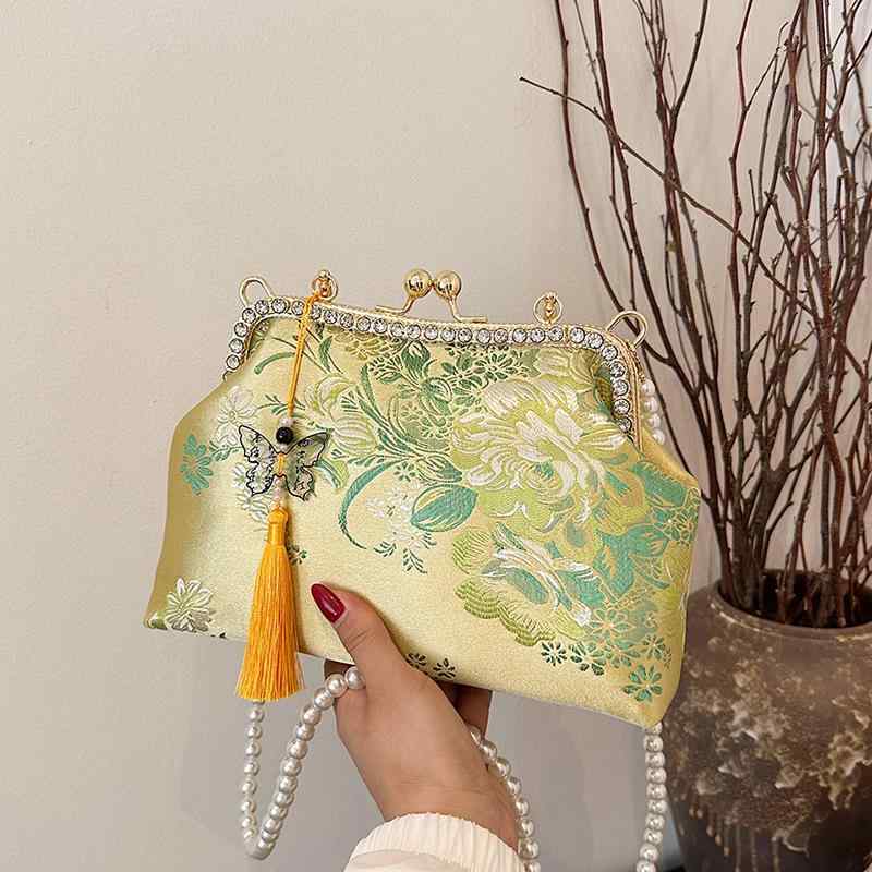 ・スタイル: チャイナ風・バッグ形状: シェル型・バッグサイズ: 中・カラー展開: ブラック、レッド、ゴールド、グリーン・装飾: 刺繍、ビーズ・裏地素材: ポリエステル・開閉方法: ロック・内部構造: 証書ポケット・硬度: 中・外ポケット: スリットポケット・ショルダーストラップ: 1本・適用シーン: 日常使い