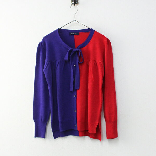 【ウィンターセール】極美品 2020AW 秋冬 Lois CRAYON ロイスクレヨン ウール混 バイカラー リボン ニット カーディガン M/レッド パープル系【2400012116344】【中古】*..