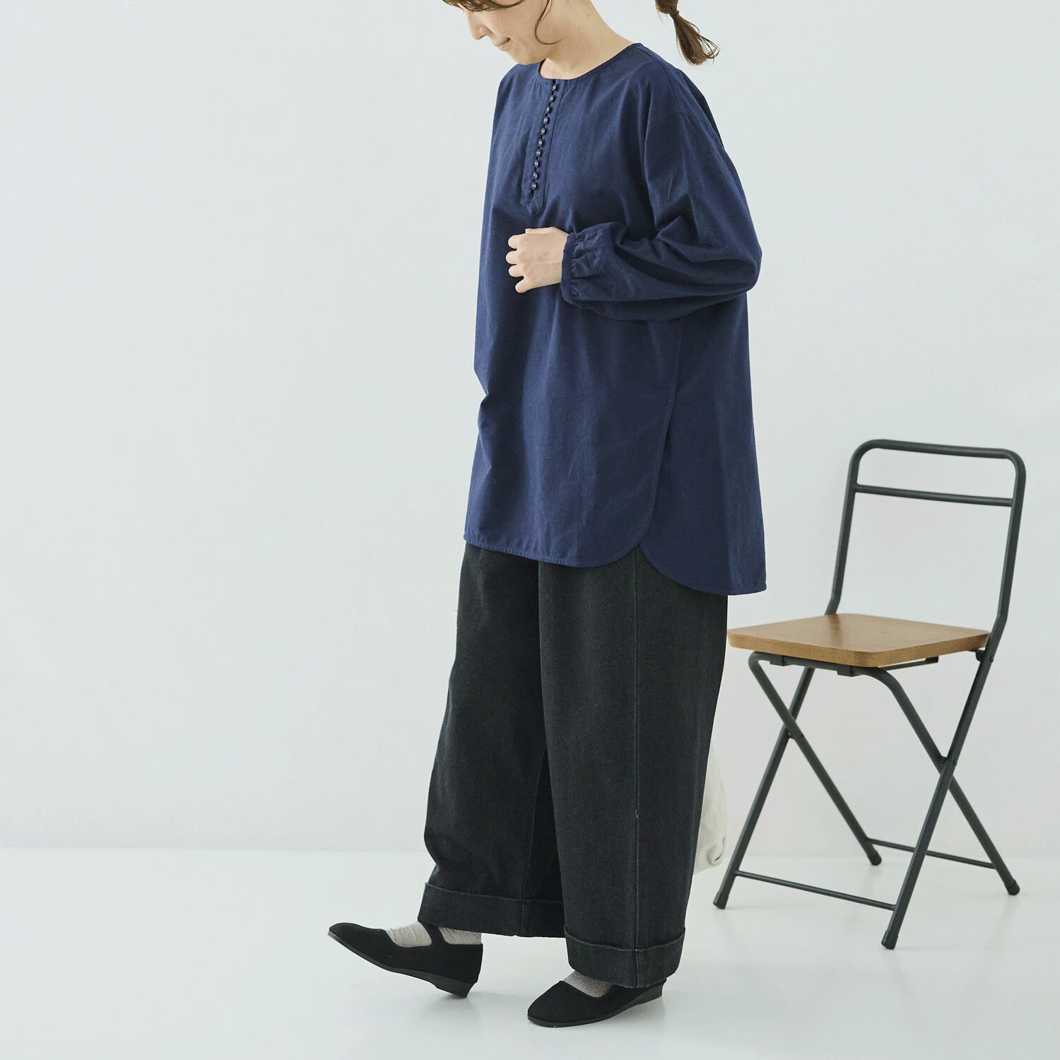 cloudnine ノンノ 先染コットンフランネル無地 裾前後差つき 袖刺繍チュニック