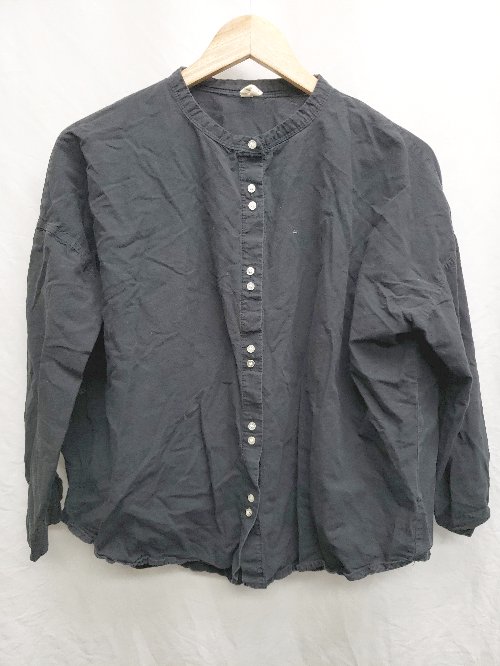 ◇ cloudnine クラウドナイン リネン混 スタンドカラー 長袖 ブラウス カットソー サイズM~L ブラック レディース P 【中古】