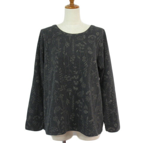 【中古】クラウドナイン cloudnine カットソー 花柄 プリント 長袖 M~L 黒 ブラック レディース 【ベクトル 古着】 220623