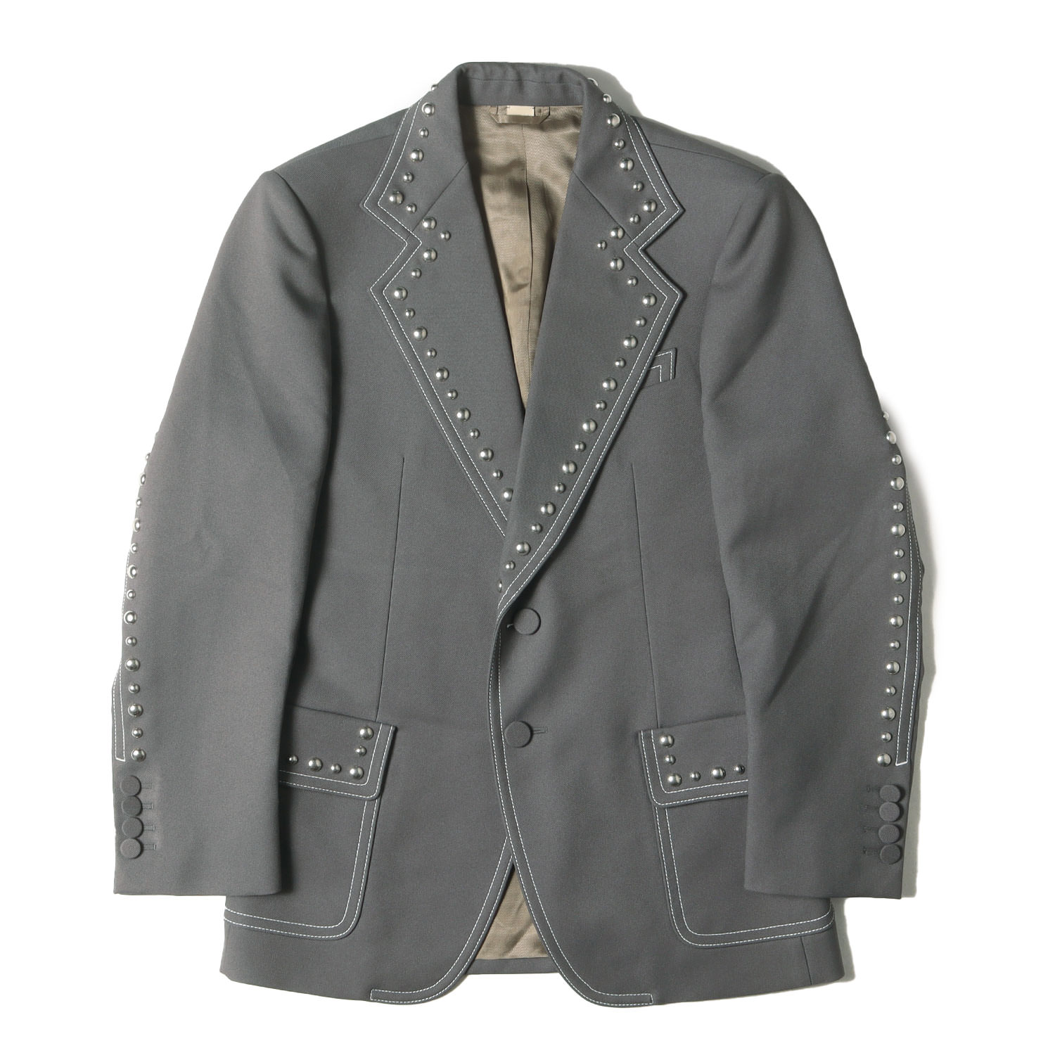 GUCCI グッチ ジャケット スチールグレー サイズ:46 | スタッズ付き ポリツイル 2B テーラード ジャケット | Fluid Drill Studded Jacket 710897 ZAKGX | イタリア製 ア..