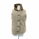 【中古】ディアージュ Deargue フェイクムートンベスト ダウンベスト 切替 ミドル丈 フード付き フェイクファー 40 L グレージュ 茶色 ブラウン /HO8 レディース 【ベク..