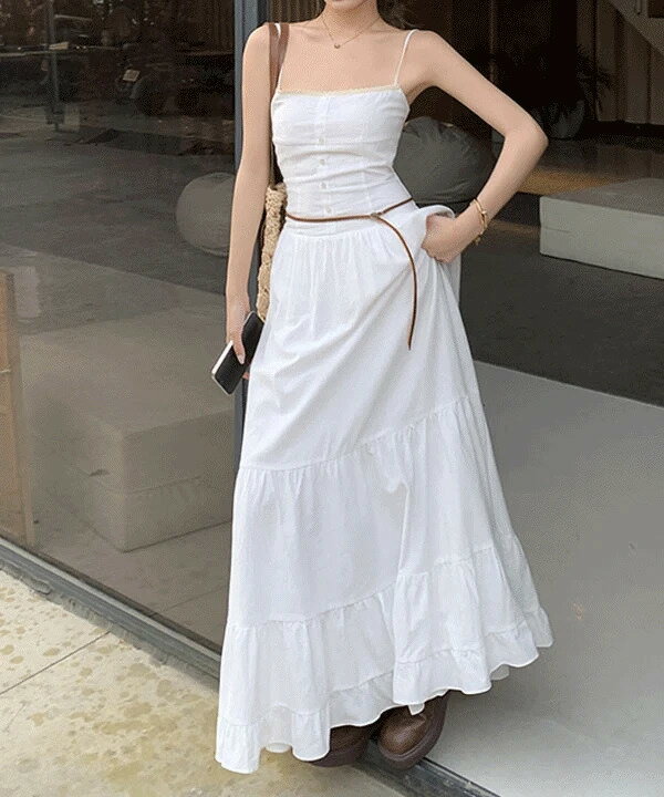 ルヴィティコルセットボタンフリルロングスリーブレスワンピース マキシワンピース スリップドレス レディース|韓国 Dearlow|コーディブック