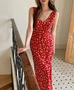 ヘリソンVネックフラワースリーブレスロングワンピース マキシワンピース スリップドレス レディース|韓国 Dearlow|コーディブック