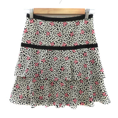【中古】ディアプリンセス Dear princess ティアードスカート フレアスカート ミニ丈 花柄 マルチカラー 黒 ブラック /YK9 レディース 【ベクトル 古着】 240531