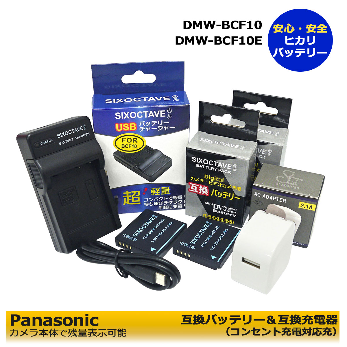 ★コンセント充電可能★Panasonic 送料無料 DMW-BCF10 互換バッテリー 2個 と 互換USB充電器 1個と ACアダプター 1個の 4点セット DMC-FP8 DMC-FS4 DMC-FS6 ..